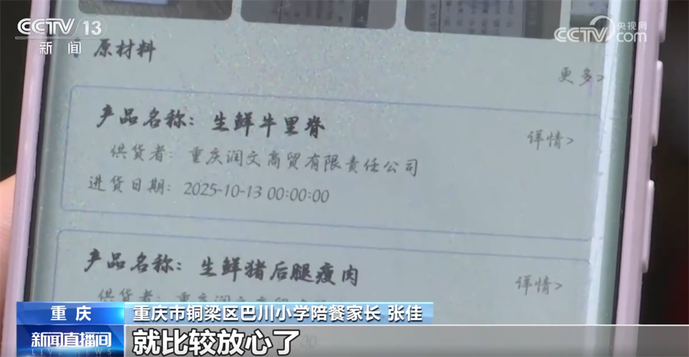 铜梁区巴川小学陪餐家长称:“像以前可能我们都不太清晰学校到底吃什么,可是现正在越来越公开,然后我们也能够正在手机平台上都能看到,家长就对小伴侣吃的这一方面比力安心了。”