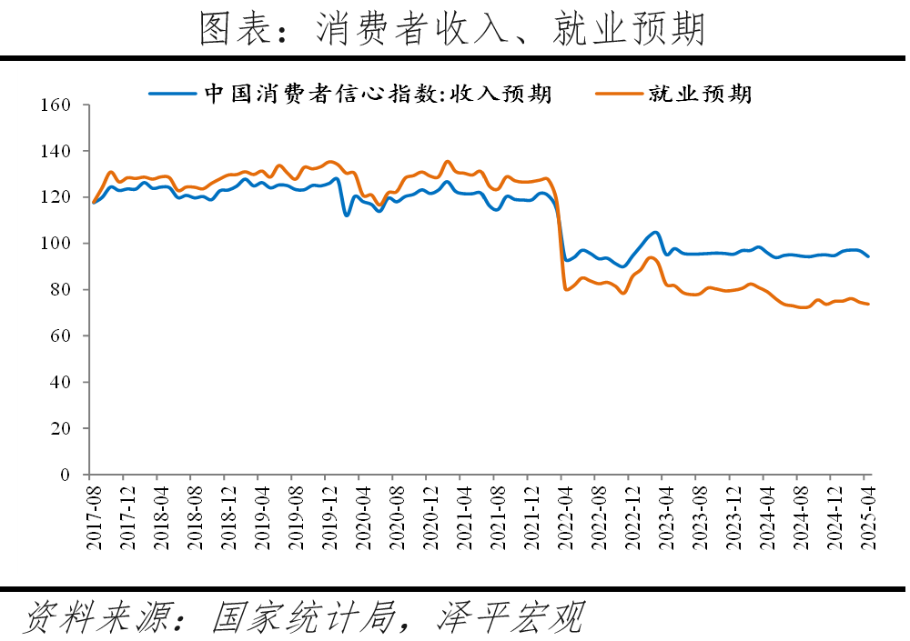 后房地产时代,简单打消性办法已不克不及实现楼市企稳,目前焦点限制要素是居平易近领取能力和预期,2025年4月,居平易近消费决心指数对将来的收入、就业预期环比别离-2。6%、-1。1%,同比别离为-1。7%、-6。7%。所以,需要新一规模经济刺激和住房保障银行收储之类的办法。